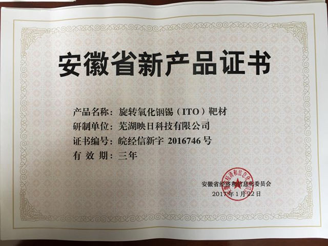 安徽省新產(chǎn)品證書